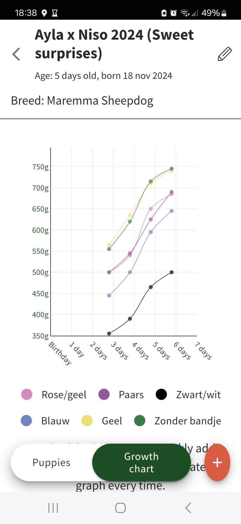 Allemaal weer een mooi sprongetje in gewicht gemaakt vandaag. En dat is niet het enige sprongetje, ook in ontwikkeling gaan ze enorm hard. Ze reageren nu echt als je bij de werpkist staat, komen naar je toe gewaggeld 😃 en willen allemaal even aandacht.